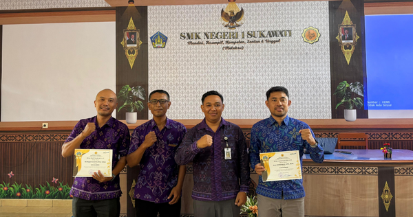 Sebagai bentuk apresiasi, Kepala Sekolah menyerahkan sertifikat kepada kedua pemateri. Acara ditutup dengan sesi foto bersama seluruh peserta. Acara diseminasi ini diharapkan dapat menjadi langkah awal bagi SMKN 1 Sukawati untuk terus berinovasi dalam pembelajaran dan menciptakan generasi muda yang siap menghadapi tantangan di masa depan.
