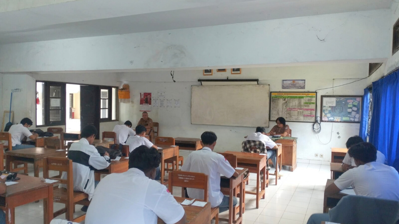 Senin, 9 Maret 2026, siswa Kelas XII SMKN 1 Sukawati resmi memulai hari pertama Ujian Sekolah Tahun Pelajaran 2025/2026. Ujian kali ini dilaksanakan secara daring (online), di mana para siswa mengerjakan soal langsung melalui perangkat smartphone masing-masing di dalam ruang kelas. Suasana sekolah tampak tenang dan tertib saat seluruh peserta didik fokus menatap layar ponsel untuk menjawab setiap butir soal dengan penuh konsentrasi.